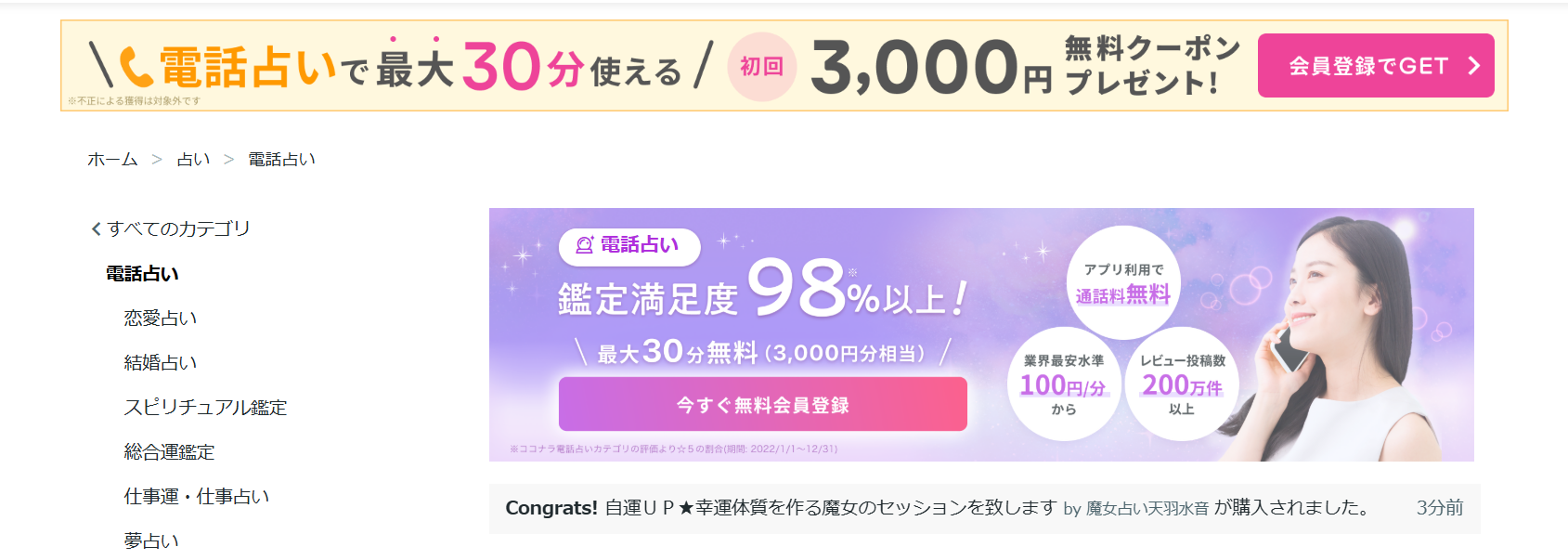 多くの電話占いサイトでは、初回の利用者向けにおトクなキャンペーンを実施しています。例えば、「電話占いウラナ」では、優先鑑定権付きで10分間無料、さらに5分の増占特典がついてくるなど、初めての利用にお得感があるプランを提供しています。こうしたキャンペーンを活用することで、費用を抑えつつ、自分に合った占い師やサイトを見つけることができます。初めに複数のサイトを試して比較し、自分が最も快適に利用できるサービスを選ぶのがおすすめです。